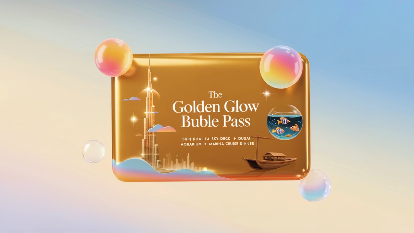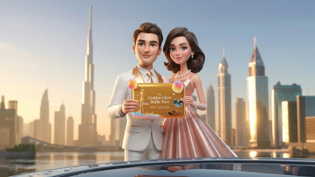 Step into Dubai’s golden hour with the Golden Glow Bubble Pass — a journey through the city’s most luxurious highlights.